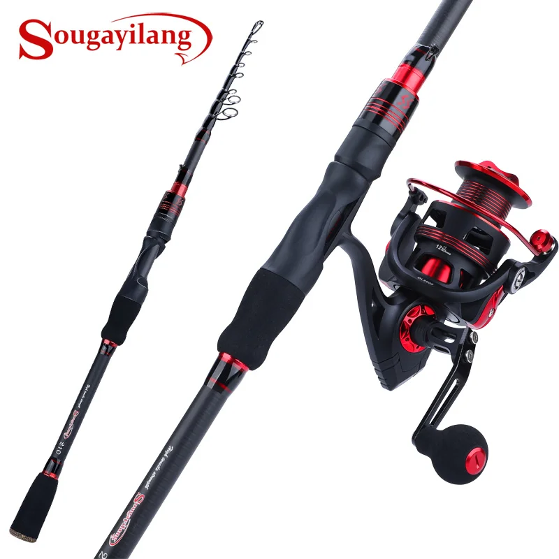 New Product Sougayilang 1.8-2.1M Spinning Fishing Rod Reel Combo Telescopic Carbon Fiber Fishing Rod with 12+1B